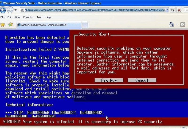 By the turn of the century, scareware was a frequent occurrence. Website visitors would often receive a warning stating that a catastrophic error had occurred (or similar), calling the user to download a certain software to clean or fix their device.