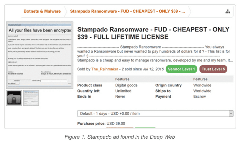 New families of ransomware reportedly rose 172% in the first half of 2016. As it increased in value, it was only natural for ransomware to become a commodity. Since late 2015 there has been an uprising of ransomware as a service (RaaS), where threat actors sell variants of ransomware to anyone who wants it – sometimes for as little as $39. It is a lucrative business and has such a low entry barrier that practically anyone can begin infecting companies.