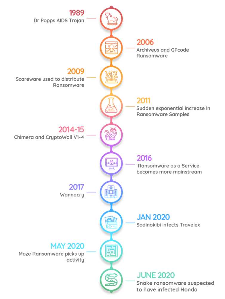 Ransomware has been around since the late 1980s, thanks to the Harvard-educated evolutionary biologist Dr. Popp. While at the World Health Organization’s AIDS conference in 1989, Popp distributed his malware, dubbed the AIDS Trojan, disguised as informational software for the event. After 90 reboots, the malware was used to encrypt data on machines and then ask the victim for a ransom. Although it began here, ransomware as we know it today didn’t take off in the mainstream until much later.