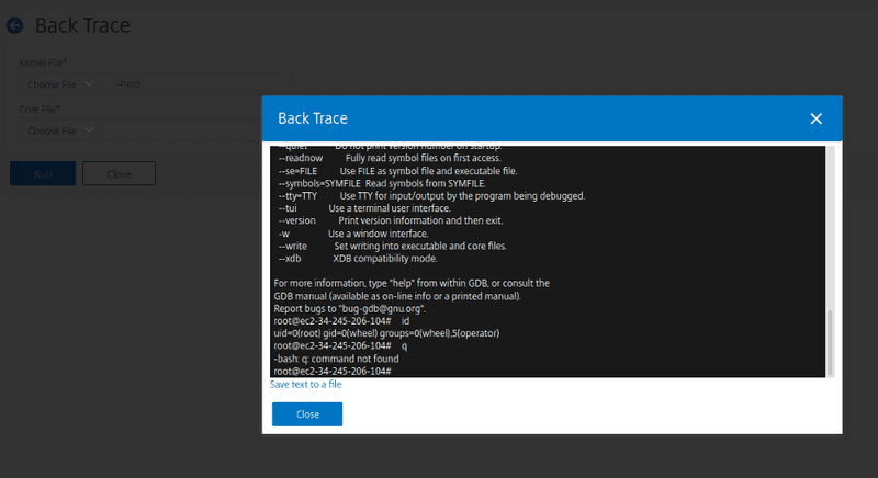 There is an option under System Diagnostics that allows you to run a backtrace. Without going into the technicalities of this command, interestingly, it asks for a file path but does not actually check that the user submits a valid file name. Using Burp, we were able to intercept and modify the request, which resulted in command execution as the root user. Ding ding!
